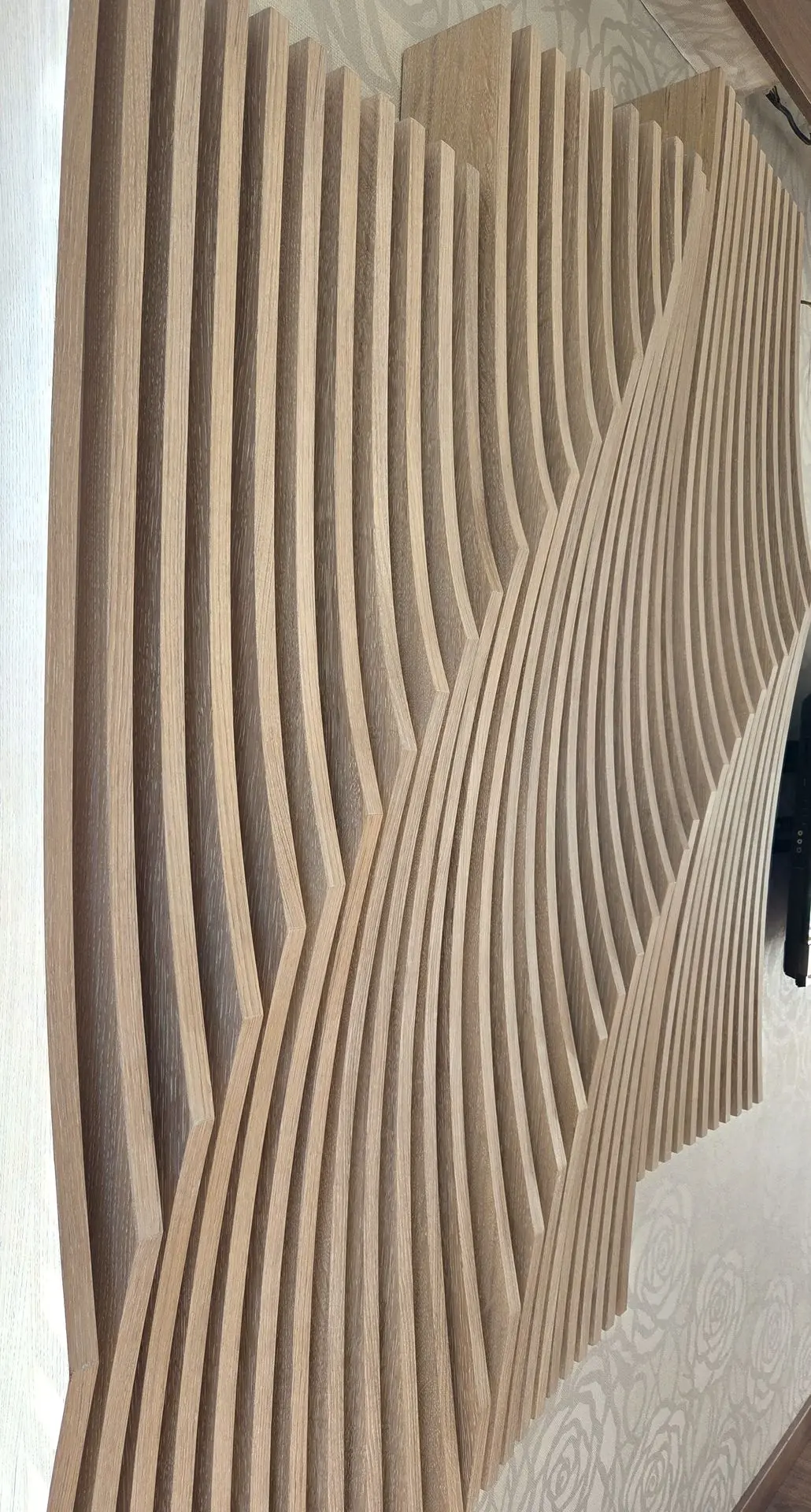The homeowners were fully involved from the start, utilizing our sample service for wood and fabric finishes, ensuring the acoustic treatment seamlessly matched their decor. We also provided 3D renderings to clearly visualize the final result.
